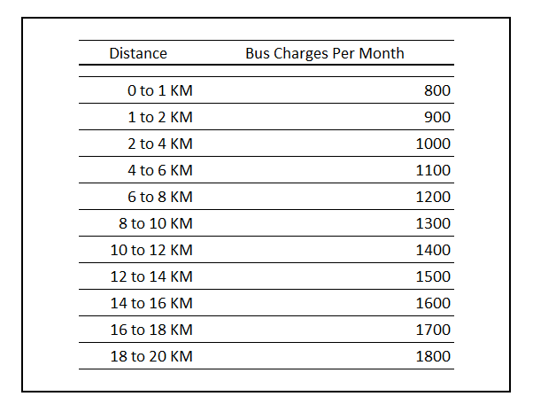 BUS FEESBus Registration Charges of Rs. 100/- shall have to be paid in addition to bus charges at the time of opting for transportation as well as at the beginning of each academic year.