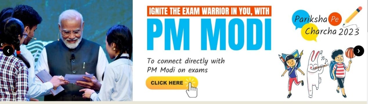 PARIKSHA PE CHARCHA is an annual festival where the honorable Prime Minister of India interacts with the Students, Teachers and Parents who are selected through participation in the creative writing competition. This is an online competition where all the students from Class 9-12 along with their parents and teachers can participate. Registration should be made in mygov.in portal and the link, http://innovateindia.mygov.in/ppc-2023/ , in order to participate in the creative writing competition.