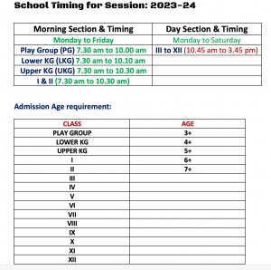 The table below shows the required minimum age of the children to be eligible for admission to different classes in reference to 1st April of the year in which admission is sought for.