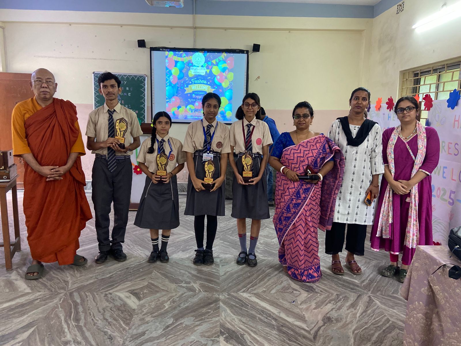 Our school joyfully organized a Freshers’ Welcome program for Classes IX and XII along with a felicitation ceremony for AISSE and AISSCE toppers. The event was filled with vibrant performances, warm speeches, and applause. New students were warmly welcomed, while the achievers were honored with certificates and tokens of appreciation. The celebration created an inspiring atmosphere, motivating all students to aim high and feel proud to be part of the Bodhisukha family.