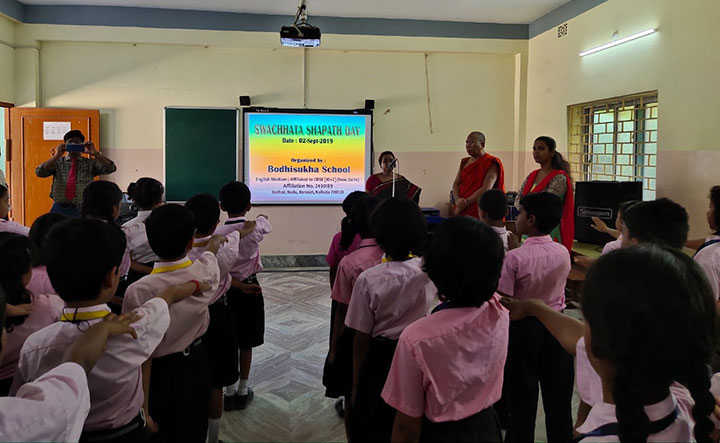 Bodhisukha School strongly believes in maintaining cleanliness not only in school but also in the surrounding community and not only for a few days of the program but also throughout the life time. Cleanliness should be main moto to each and every individual. In this respect we would like to give our society the message of “Clean and Green India”, and thus we pledge “I WILL REMAIN COMMITED TOWARDS CLEANLINESS AND DEVOTE TIME FOR THIS. I WILL DEVOTE 100 HOURS PER WEEK TO VOULANTARILY WORK FOR CLEANLINESS. I WILL NEITHER LITTER NOR LET OTHERS LITTER. I WILL INITIATE THE QUEST FOR CLEANLINESS WITH MYSELF, MY FAMILY, MY LOCALITY, MY VILLAGE AND WORK PLACE.”